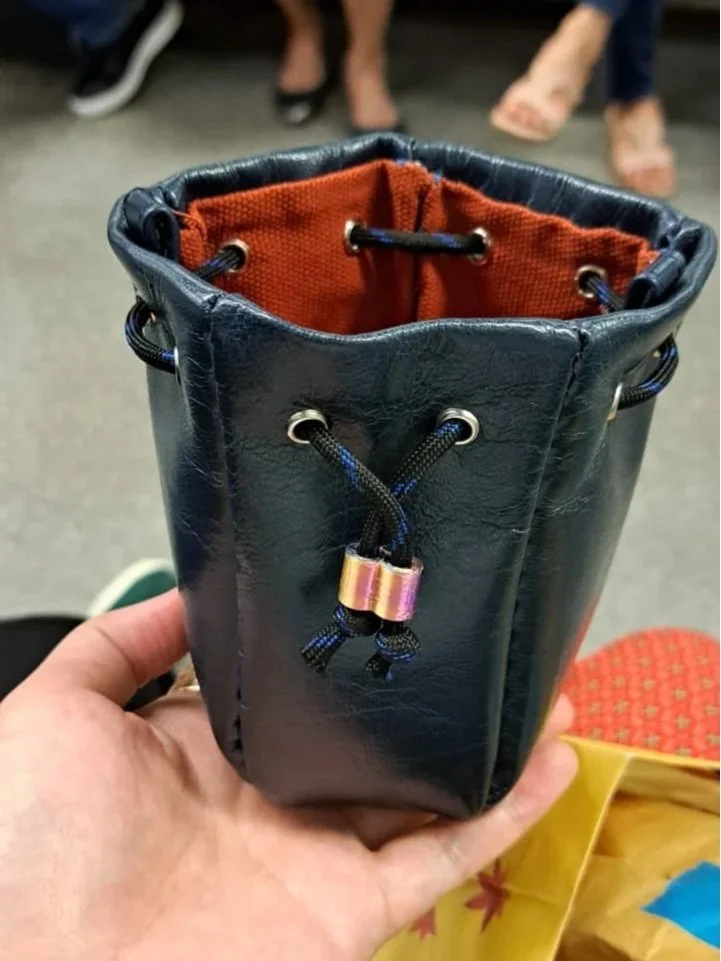 Snack Bag A drawstring bag for small items. Materials: 100% napa leatherPLA, nylon, canvas, steel Slide 1 Slide 1 (current slide) Slide 2 Slide 2 (current slide) Slide 3 Slide 3 (current slide)